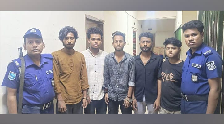 আটককৃতরা হলেন- ফাহিম আহম্মেদ (২৩), মো. নিরব হোসেন (১৮), মো. ফয়সাল (২০), মো. অনিক আহমেদ অনিন (২১) ও মো. আবির (১৫)।