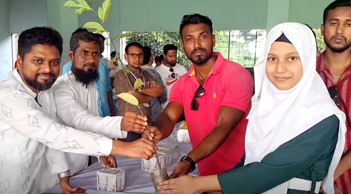 বক্তব্য শেষে শিক্ষার্থীদের মাঝে পরিবেশ বান্ধব গাছ উপহার দেওয়া হয়।