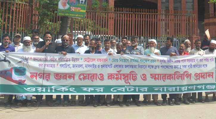নারায়ণগঞ্জে পাঁচ দফা দাবিতে নগরভবন ঘেরাও করে মানববন্ধন ও স্মারকলিপি দিয়েছে নাগরিক সংগঠন ওয়ার্কিং ফর বেটার নারায়ণগঞ্জ।