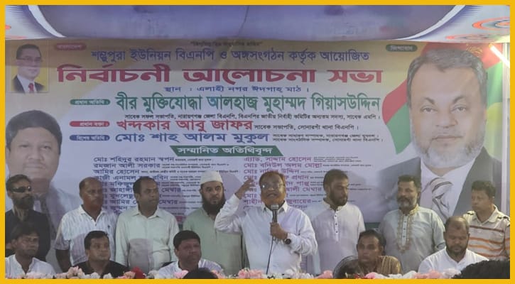 শনিবার (২৭ সেপ্টেম্বর) বিকেলে শম্ভুপুরা এলাহী নগর ঈদগাহ মাঠে শম্ভুপুরা ইউনিয়ন বিএনপি ও অঙ্গ সংগঠনের উদ্যোগে আয়োজিত নির্বাচনী আলোচনা সভায় তিনি এসব কথা বলেন।